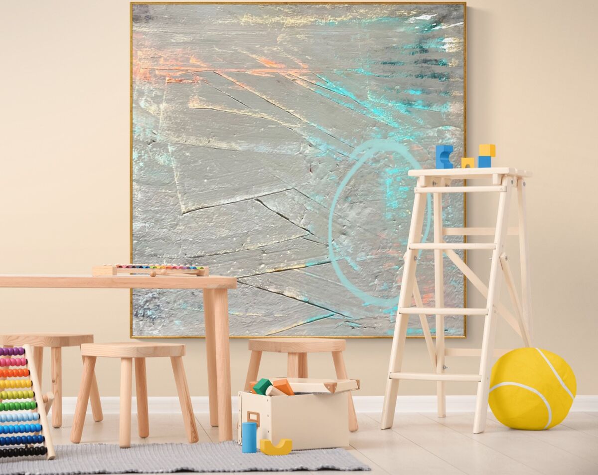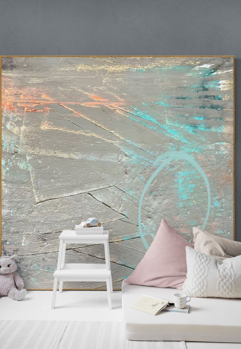 Wall in pale olive and grey