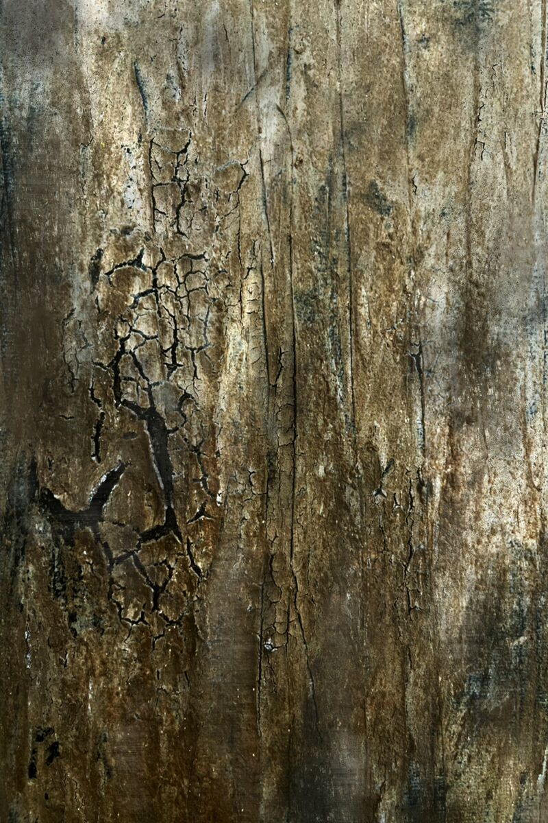 Mixed media on canvas. Mixture of acrylics, bentonite clay, and PVC glue were put on canvas. Let it dry for couple of days to make sure the cracks were formed properly.