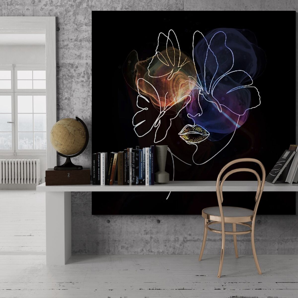 simplicity in colours, on line drawing